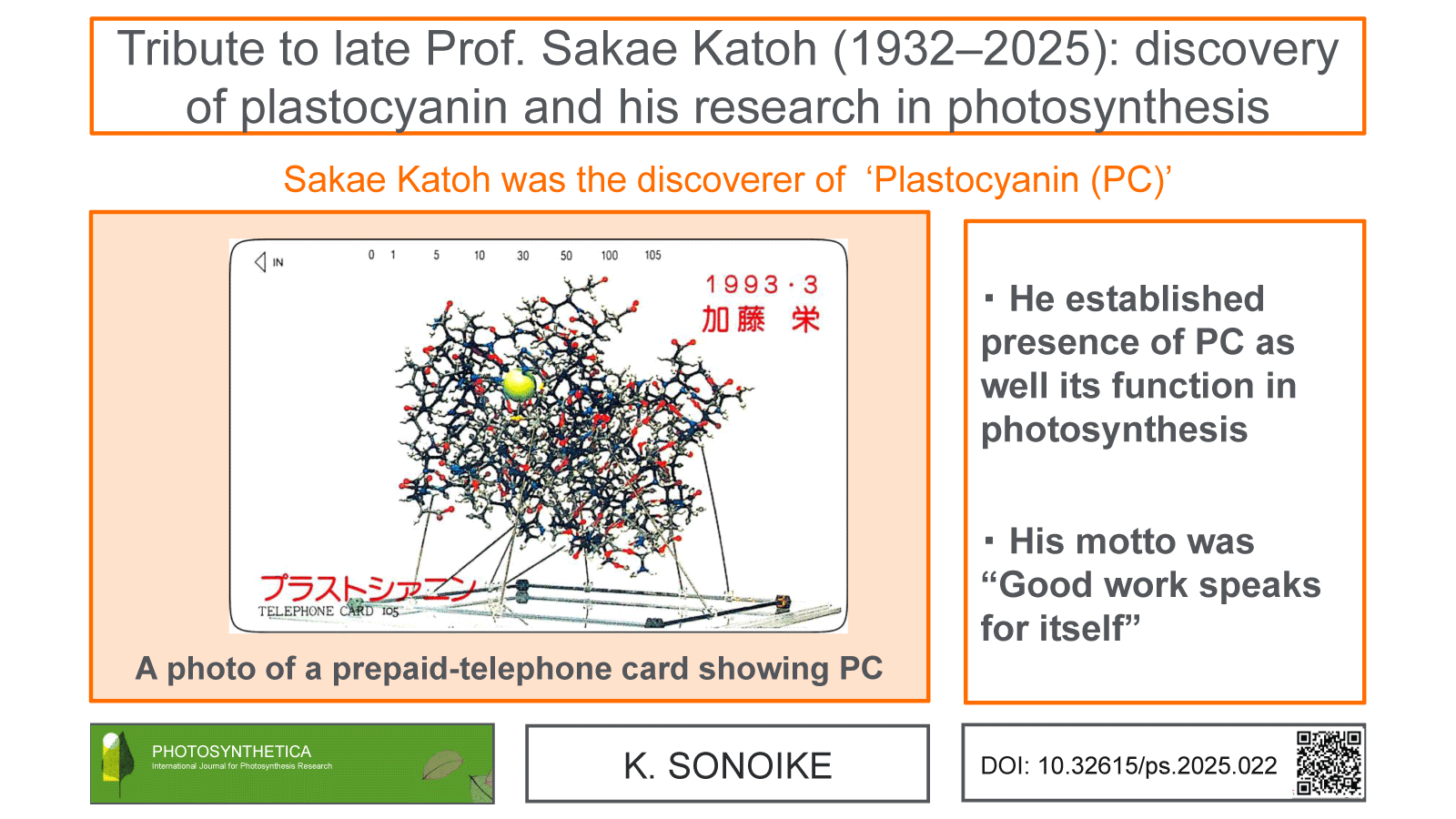 Tribute to late Prof. Sakae Katoh (1932-2025): discovery of plastocyanin and his research in photosynthesis
