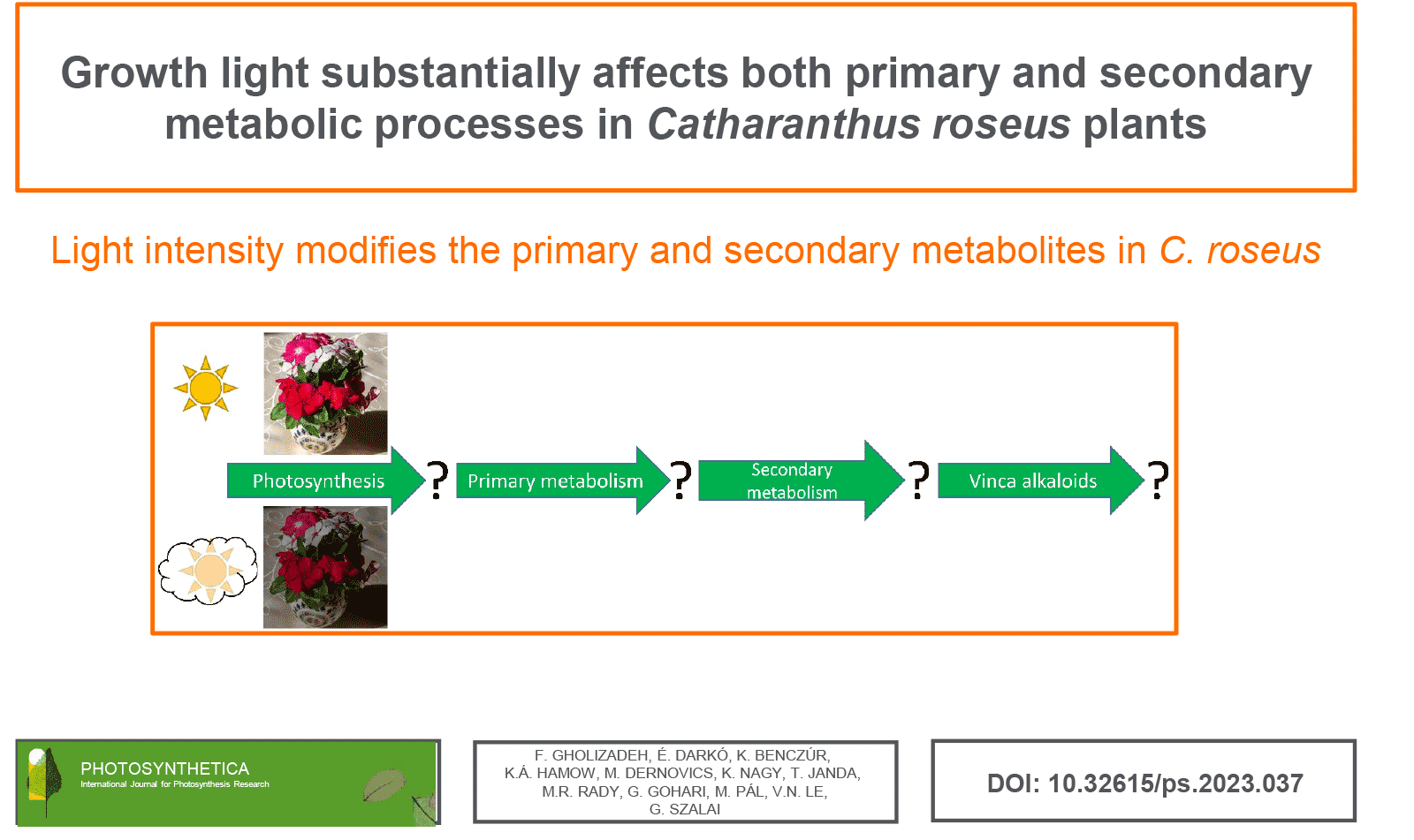 Growth light substantially affects both primary and secondary metabolic processes in Catharanthus roseus plants