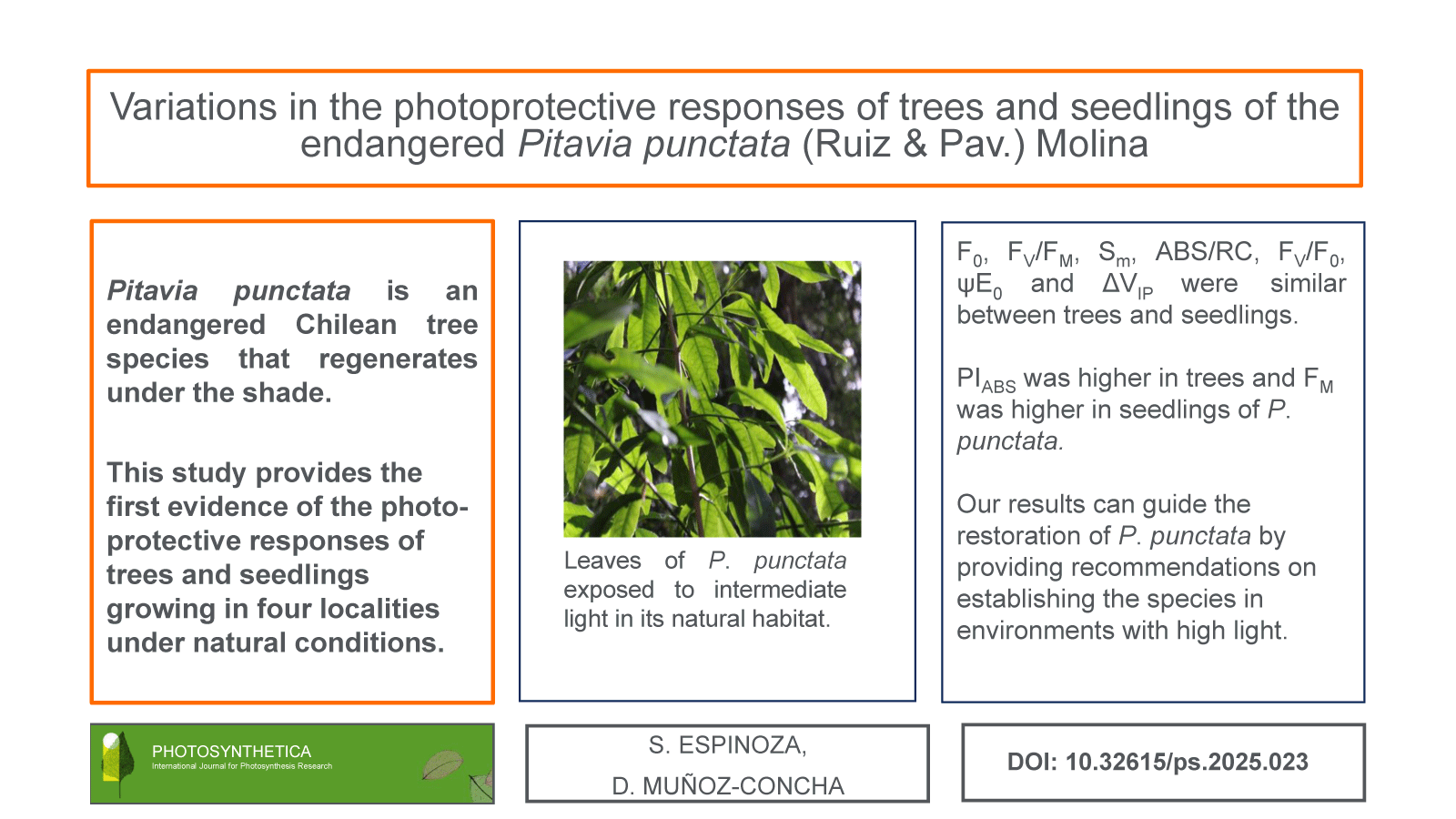 Variations in the photoprotective responses of trees and seedlings of the endangered Pitavia punctata (Ruiz & Pav.) Molina